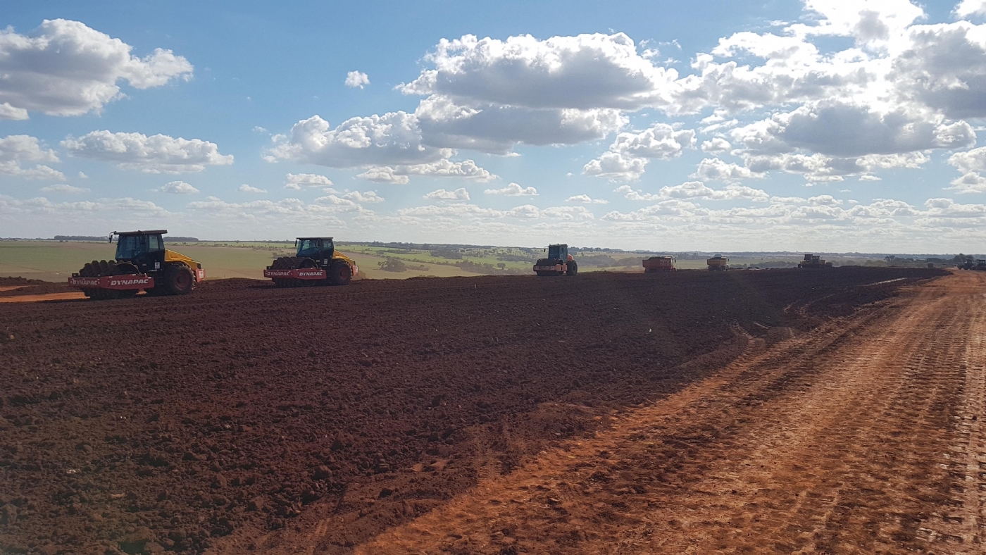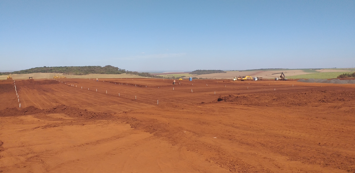 Executada em 2019, as obras de terraplenagem e pavimentação para instalação da nova fábrica da Cervejaria Petrópolis, em Uberaba/MG, contemplaram serviços de limpeza da camada vegetal, cortes e aterros, tratamento de subleito e base em brita graduada. No total, foram realizadas limpezas em uma área superior a 690 mil metros quadrados, mais de 750 mil metros cúbicos de escavações e 500 mil metros cúbicos de aterros. Também foram executados a preparação para recebimento dos pavimentos industriais em concreto, com 140 mil metros quadrados de regularização do subleito e da base em brita graduada simples.