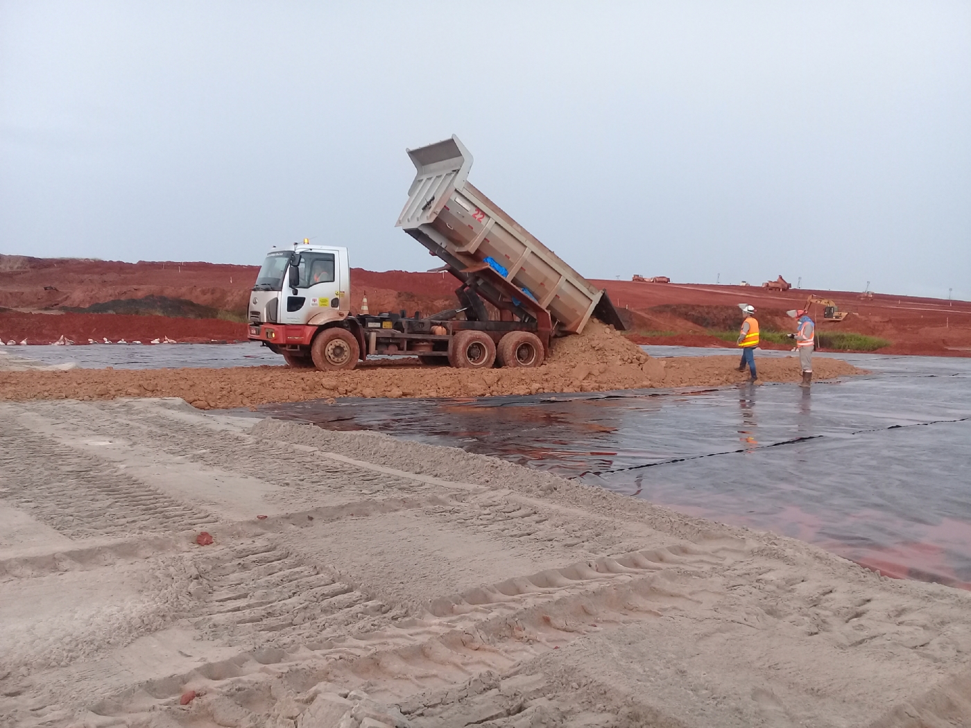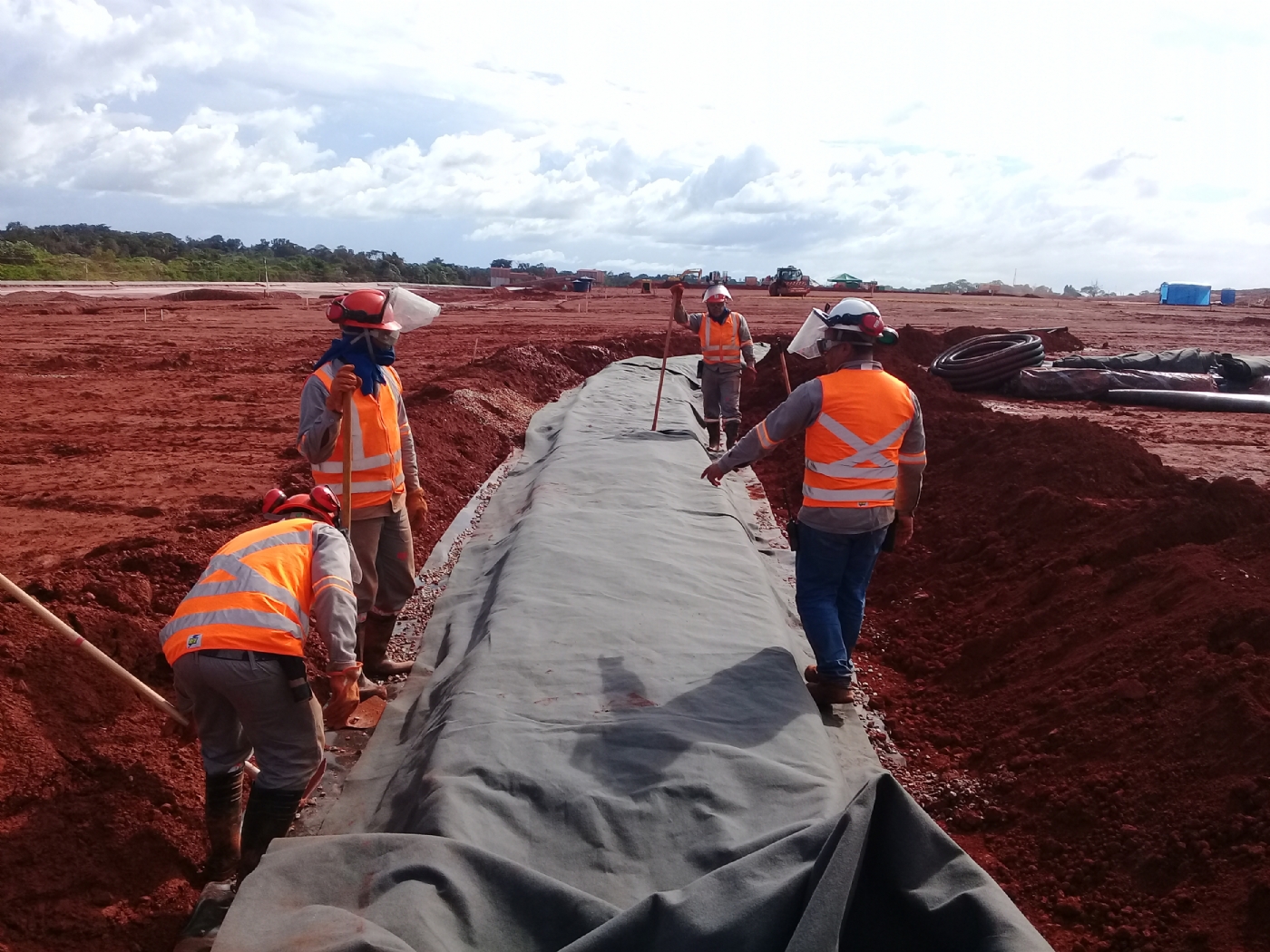 Com início em 2018 e conclusão em 2019, as obras dos aterros experimentais do Depósito de Resíduos Sólidos 1 (DRS1) foram executadas em virtude da necessidade de se avaliar as melhores soluções para fechamento do depósito de resíduos e recuperação ambiental da área. Foram executadas oito soluções distintas, com variações de materiais e camadas, com utilização de geossintéticos como geomembrana, geocomposto e geotêxtil, areia, gesso, solos argilosos e solos orgânicos, incluindo obras de acessos, instrumentação e drenagens das áreas. Em virtude do período crítico de execução (elevado índice pluviométrico do estado do Pará) e da urgência da contratante, a Construtora Nóbrega Pimenta apresentou como solução para entrega dos serviços a utilização de um galpão inflável, cobrindo uma área completa de um aterro. Com isso, os aterros foram executados de forma sucessiva durante o período de chuvas, sem interferências climáticas, concluindo as obras nos prazos definidos.