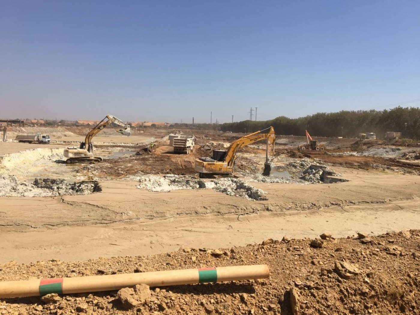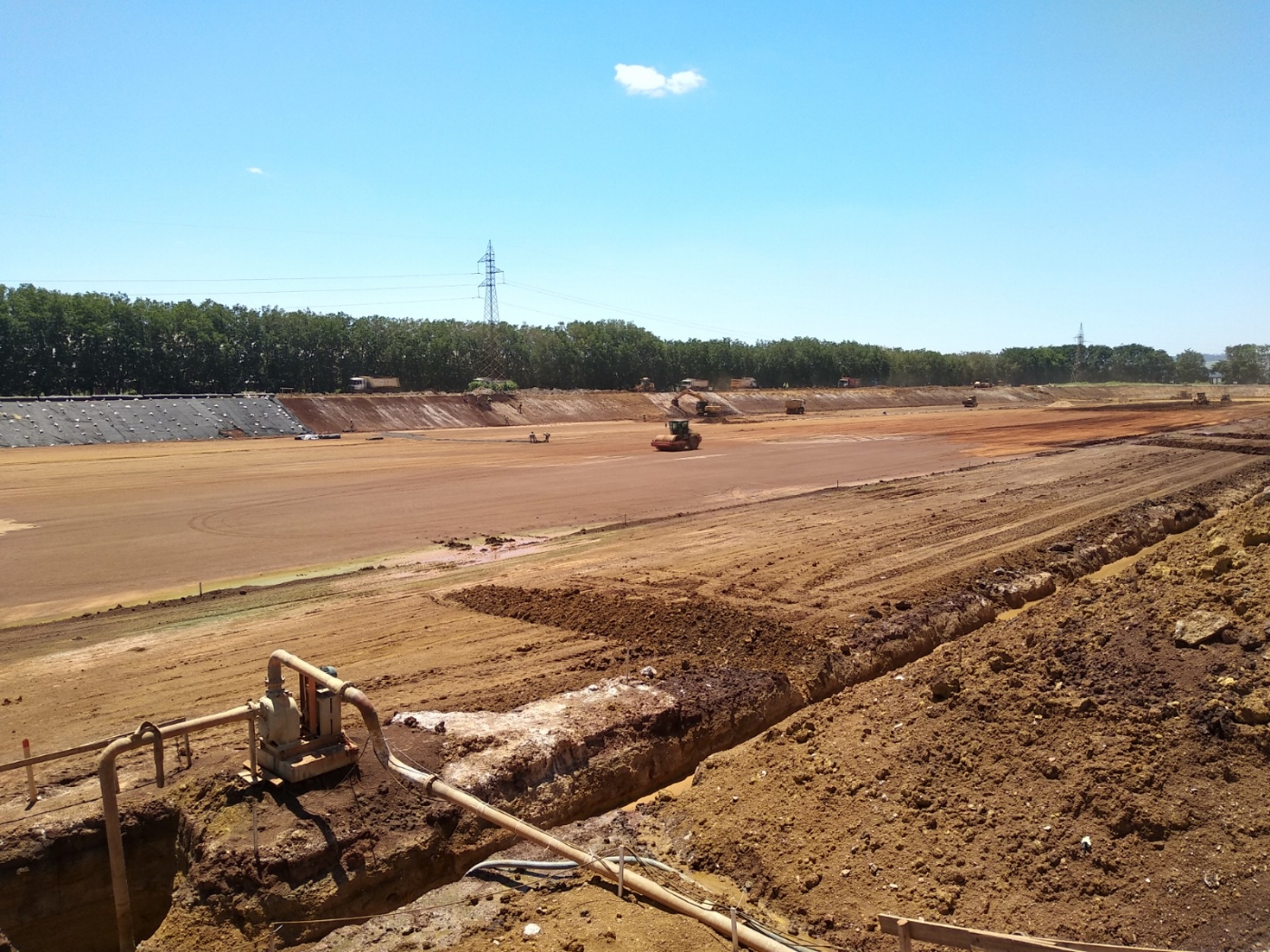 Com início em 2018 e conclusão em 2019, a impermeabilização da lagoa R consistiu em obras para desvio do fluxo normal das águas do complexo para isolamento das áreas a serem impermeabilizadas e posteriormente dragagem das águas para esvaziamento das lagoas, escavação de gesso, terraplenagem, impermeabilização e reaterro. Foram escavados mais de 300 mil m³ entre materiais contaminados e solo para conformação do fundo e taludes da lagoa, aplicados mais de 117 mil m² de geomembrana em PEAD para impermeabilização e compactados mais de 140 mil m³ de camadas de proteção sobre a geomembrana. Em algumas áreas foram aplicadas geocélulas preenchidas por concreto, permitindo a dragagem de material decantado no fundo da lagoa. Também fizeram parte do escopo os serviços complementares de drenagens, poços de monitoramento, projeto executivo detalhado, montagens elétricas e de bombas.